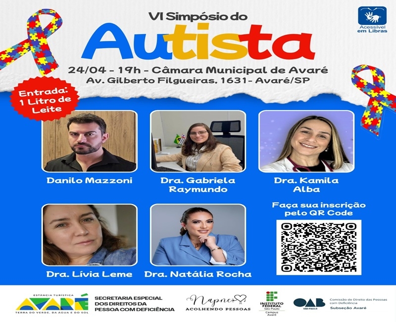 O 6º Simpósio do Autismo tem apoio do campus avareense do Instituto Federal de São Paulo (IFSP), da OAB de Avaré e do Núcleo de Apoio às Pessoas com Necessidades Educacionais Específicas (NAPNE) do IFSP.