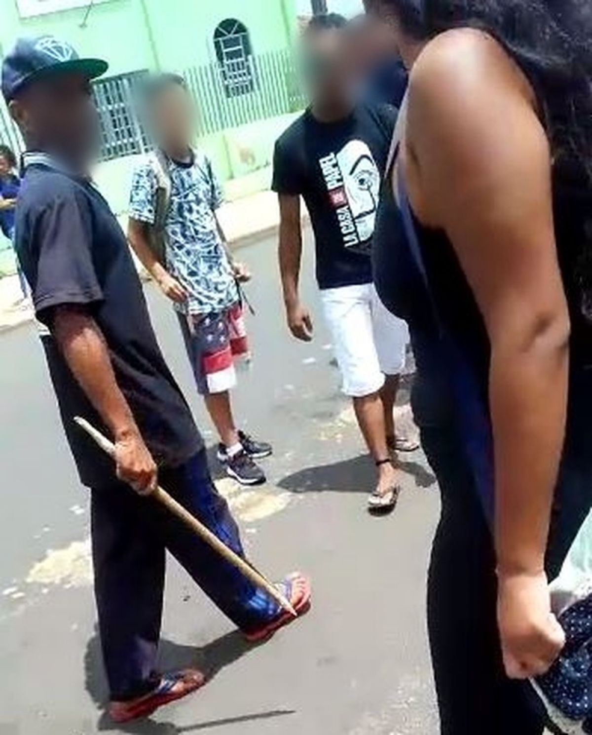 Um vídeo enviado ao G1 nesta quarta-feira (20) mostra o momento da briga. O homem aparece com um pedaço de madeira indo em direção à adolescente e, na sequência, as imagens mostram ele agredindo.