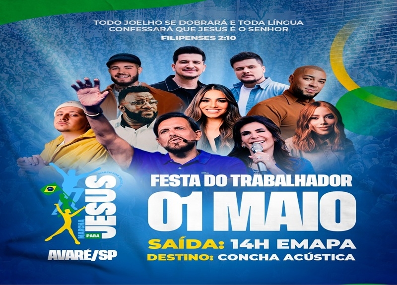 Fonte da Foto: Reprodução cartaz do eventoA cidade de Avaré se prepara para viver um dos momentos mais marcantes do calendário cristão e cultural da região: a Marcha Para Jesus, que acontece no dia 1º de maio, durante a Festa do Trabalhador.