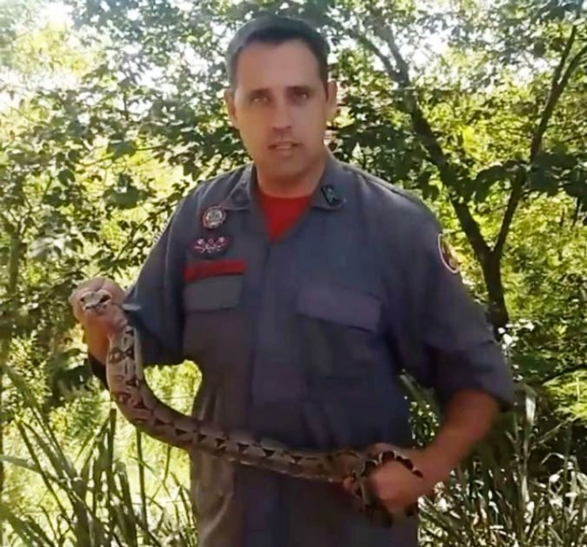 No local os bombeiros reconheceram a espécie como sendo uma jiboia, cobra não peçonhenta que abate suas presas através da asfixia e, neste caso, media em torno de 1 metro.