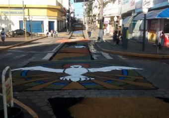 Por volta das 18 horas ocorreu a procissão pelo centro, através das ruas Rio Grande do Sul e Piauí, cujos leitos estavam ornamentados com tapetes cheios de motivos religiosos, os quais foram elaborados pelas comunidades de jovens das seis paróquias.