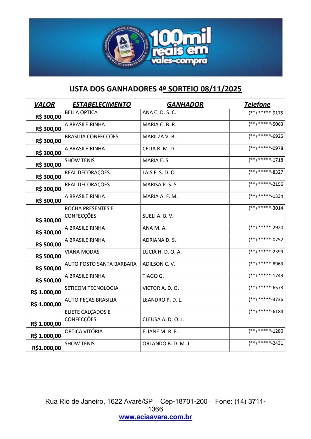 Confira a lista de ganhadores do 4º sorteio da campanha digital da ACIA