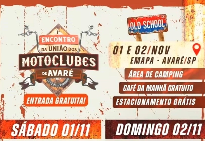 Fonte da Foto: Reprodução cartaz do eventoO 1° Encontro da União dos Motoclubes de Avaré acontece nos dias 1º e 2 de novembro no Recinto de Exposições.