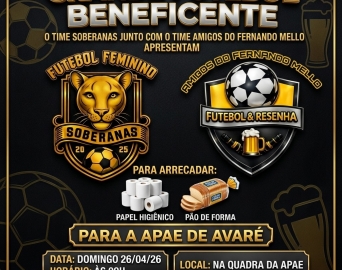 Fonte da Foto: AssessoriaA Associação de Pais e Amigos dos Excepcionais de Avaré (APAE) foi palco de um evento beneficente na manhã de domingo, 26. Duas equipes de futsal feminino entraram em quadra para promover o esporte e ao mesmo tempo colaborar com a APAE na arrecadação de material de higiene e alimento.