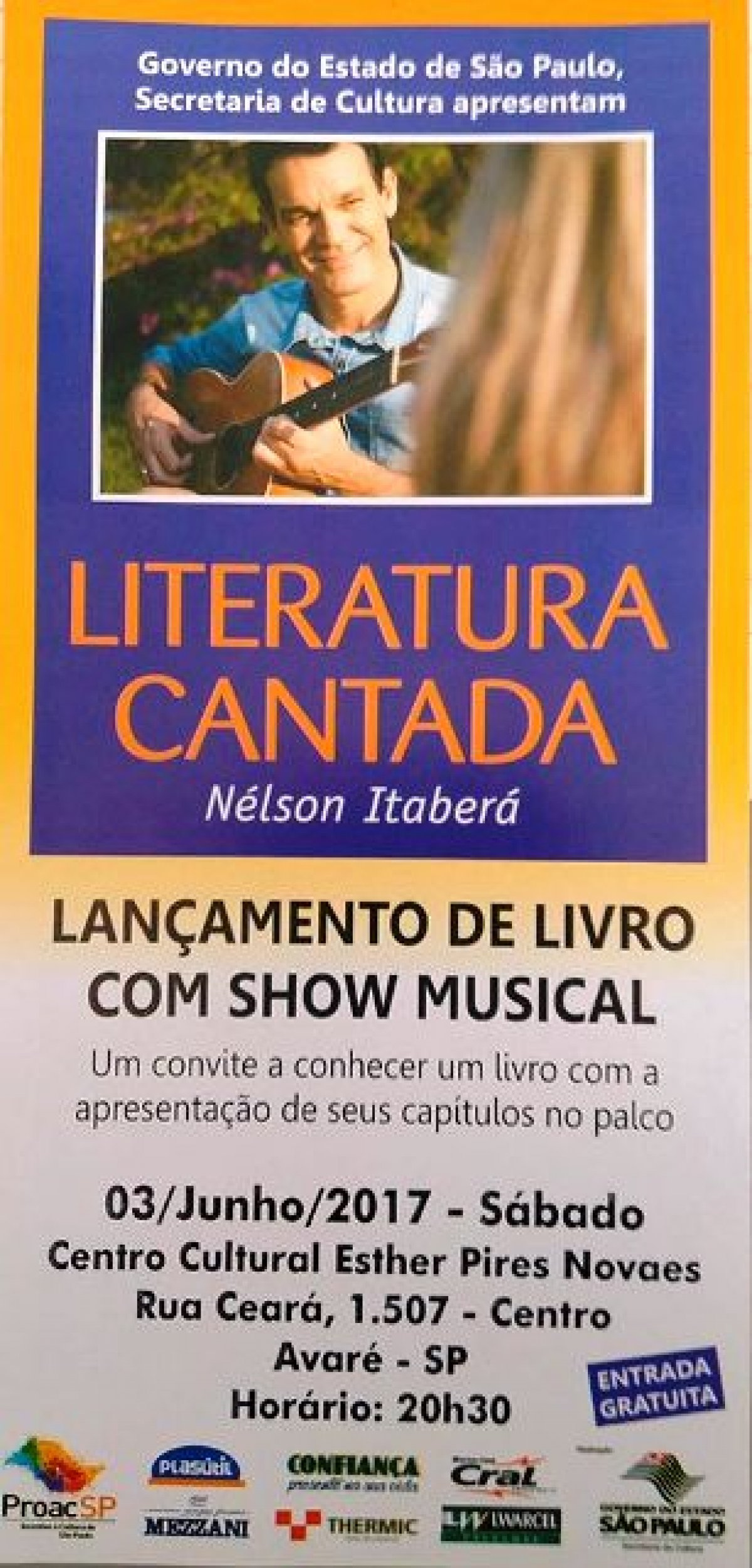 Jornalista que se sente bem à vontade com a criação musical autoral, Nélson Itaberá Gonçalves lança no dia 3 de junho, às 20h30, no Centro Cultural Esther Pires Novaes (Rua Ceará nº 1507), seu projeto “Literatura Cantada”. A entrada é gratuita.