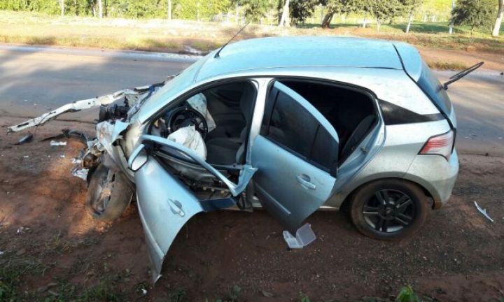legenda: Carro cruzou a pista e bateu violentamente na lateral de outro veículo