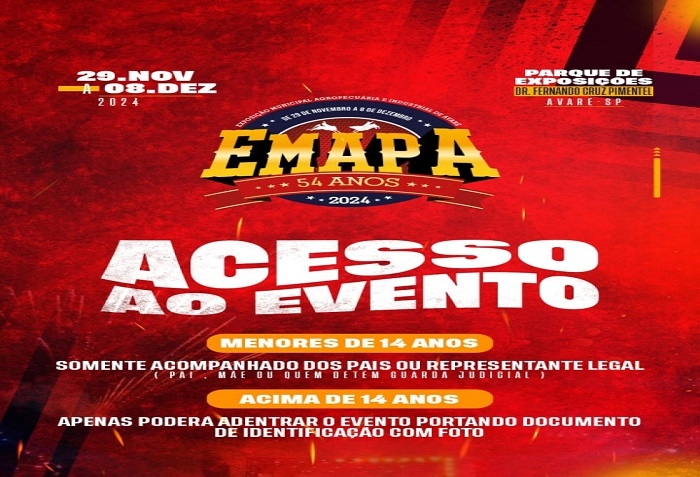 A determinação é da Justiça de Avaré. Já quem tem acima de 14 anos precisa apresentar documento com foto para o acesso ao evento.