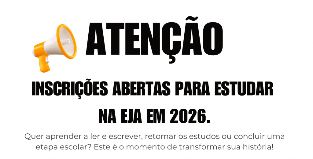 A Educação de Jovens e Adultos (EJA) está com matrículas abertas para o ano letivo de 2026.
