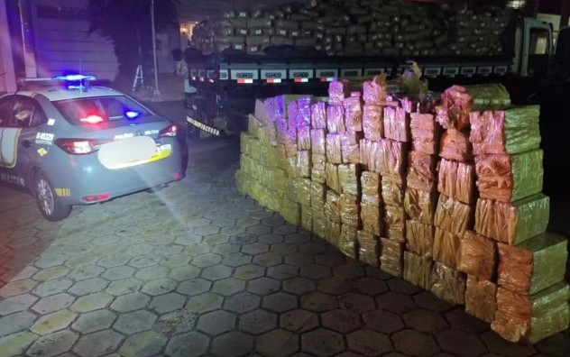O caminhão foi abordado pela equipe de policiamento rodoviário no quilômetro 240. Em meio aos sacos de massa de tapioca foram encontrados 1.889 quilos de maconha.