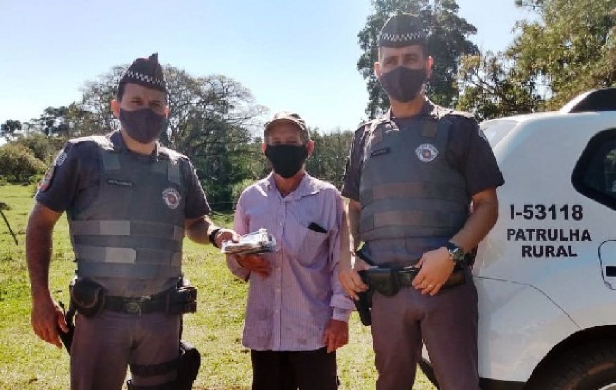 Nessa etapa de distribuição foram beneficiados os moradores da zona rural. Os policiais militares estiveram presentes em várias propriedades rurais entregando as máscaras.