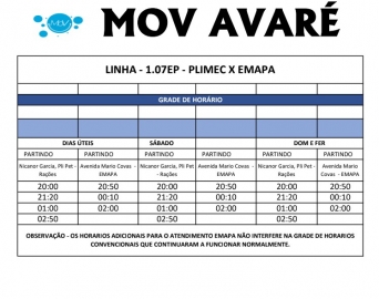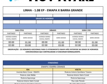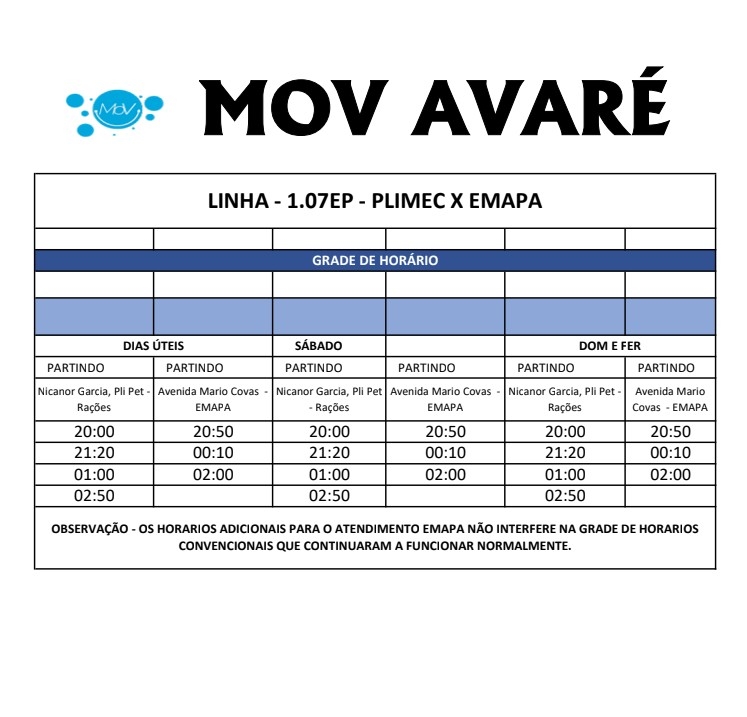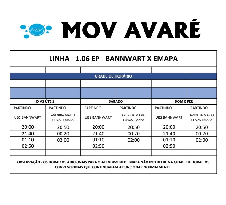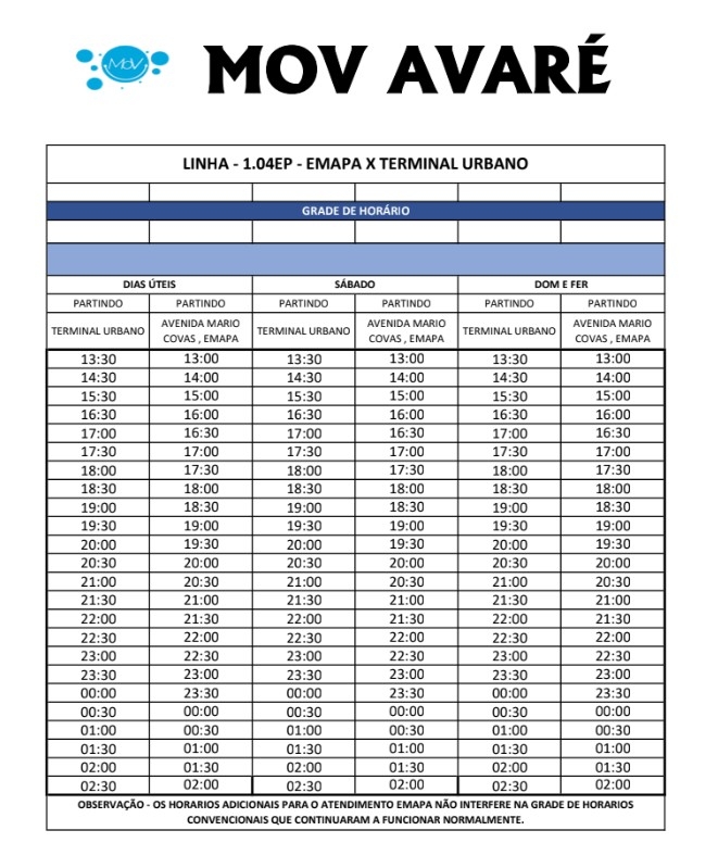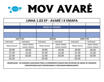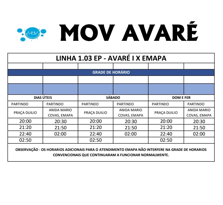 As linhas e os horários estão disponíveis no site www.avare.sp.gov.br. Basta navegar até a área "Acesso Rápido", na parte inferior da página eletrônica, e clicar no botão "EMAPA: Horários de Ônibus".