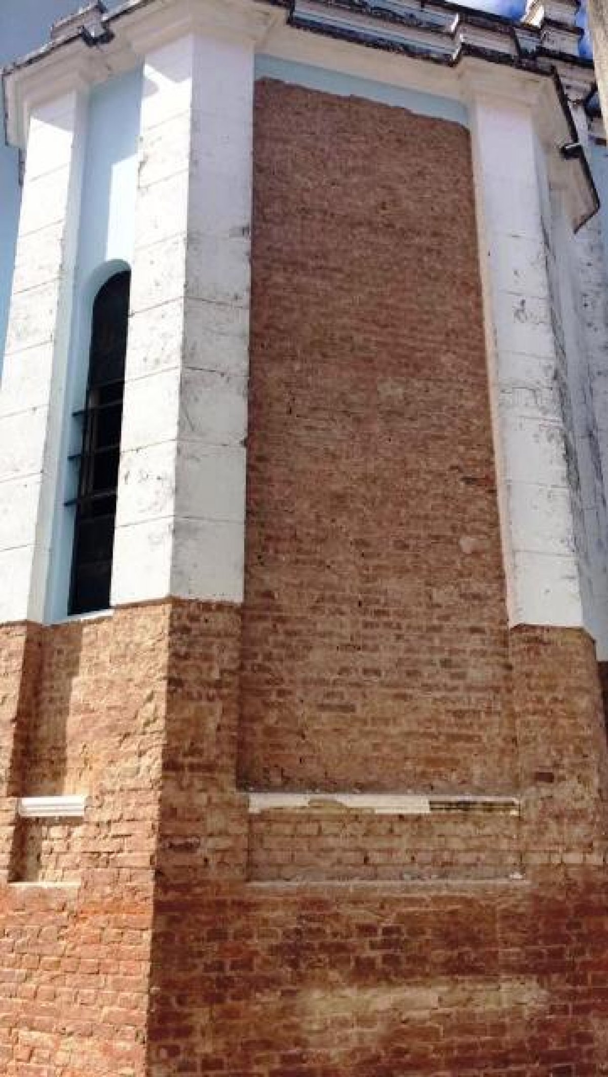 legenda: Está em execução a troca do revestimento externo no entorno de toda a extensão da igreja